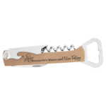 5 1/4" Laserable Leatherette Wine Bottle Openers.  Laserable Leatherette offers the look and feel of genuine leather at a fraction of the price. This richly textured, synthetic material is water resistant, easy to clean and durable enough for the rigors of daily use. The high quality workmanship of each leatherette piece is sure to impress every recipient with its elegant individuality. Laserable leatherette items can be personalized through laser engraving.